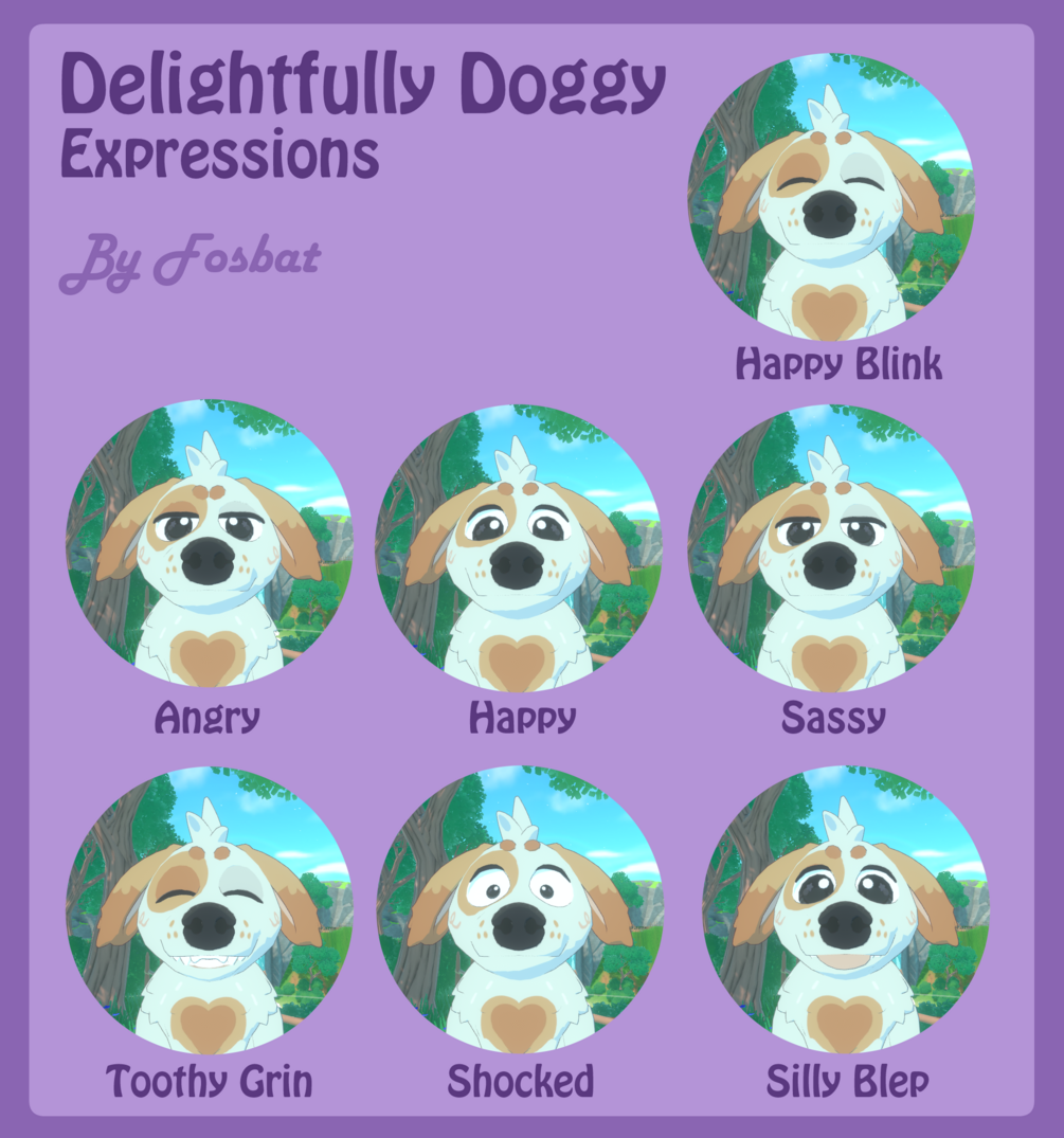 - 7 Facial Expressions (Angry, Happy Blink, Happy, Sassy, Shocked, Silly Blep, Toothy Grin)